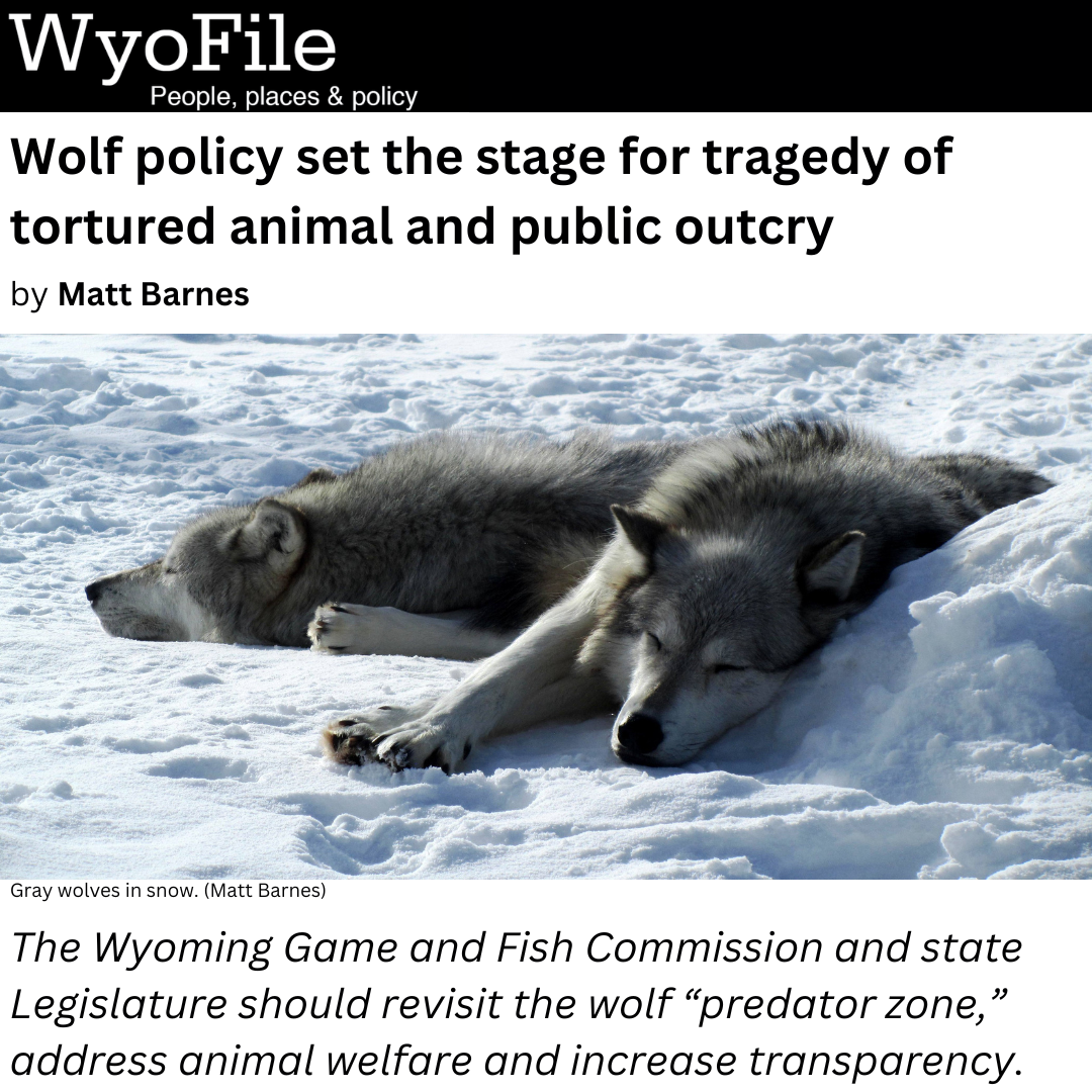 4/18: A full-length version of my comment was published in WyoFile the following day. Wolf policy set the stage for tragedy of tortured animal and public outcry.
